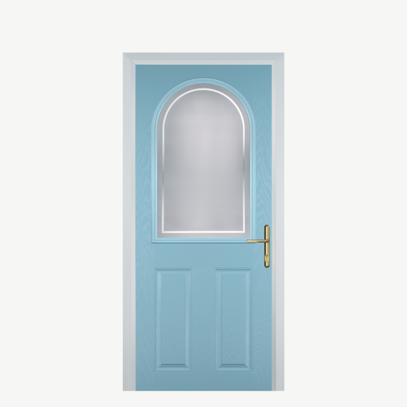 Introducing the Door E 2 Panel 1 Arch in a stunning Duck Egg Blue finish, a perfect blend of elegance and practicality for your home. This beautifully crafted composite front door not only enhances your property's curb appeal but also provides unbeatable security and energy efficiency.