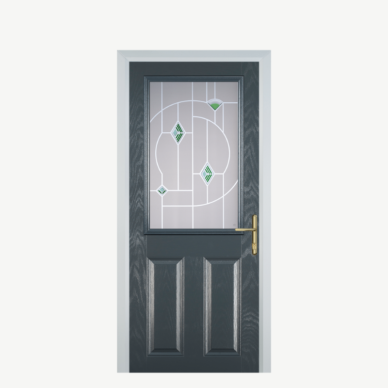 Introducing the Door F 2 Panel 1 Square in a sophisticated Grey Murano Green finish, designed to elevate the entrance of any home. This composite front door combines elegance with durability, making it the perfect choice for modern homeowners seeking style and security.