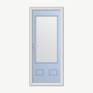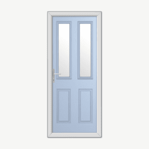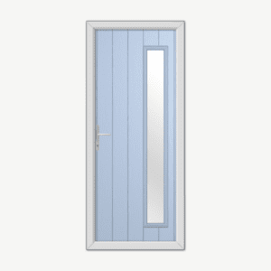 A modern option that is greatly enhanced by the colour is the York design. Order the Greenwich decorative glass unit to elevate the look, and for alternative options, consider our other blue composite doors.