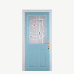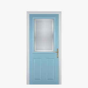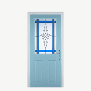 A modern option that is greatly enhanced by the colour is the York design. Order the Greenwich decorative glass unit to elevate the look, and for alternative options, consider our other blue composite doors.