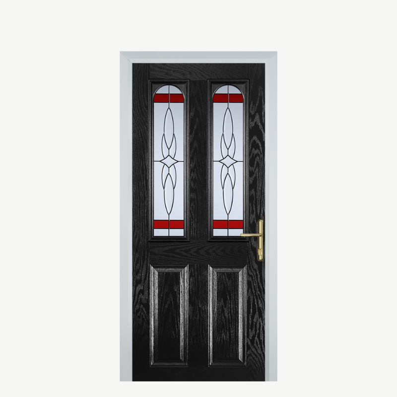 Introducing the Door A 2 Panel 2 Arch Black Crystal Harmony Red, a stunning addition to any home that combines elegance with functionality. This composite front door not only enhances your property’s curb appeal but also offers superior performance and security.
