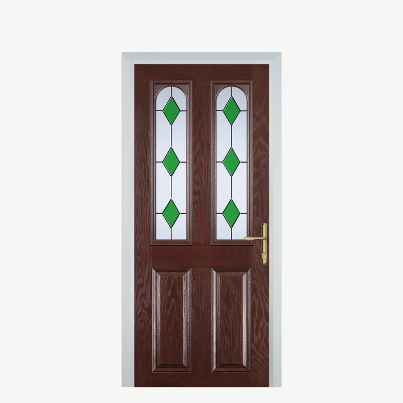 Refresh your entrance with the Door A 2 Panel 2 Arch Dark Wood 3 Drop Diamond Green, fitted by UK Composite Doors. This dark wood finish with green diamond accents brings natural, rich appeal, enhanced by composite advantages: exceptional durability to endure the weather, top-tier insulation for a snug interior, and advanced security for peace of mind. Easy to maintain and eco-friendly, it’s a stylish, dependable upgrade. Also available as a supply only option for those who prefer to arrange their own installation.