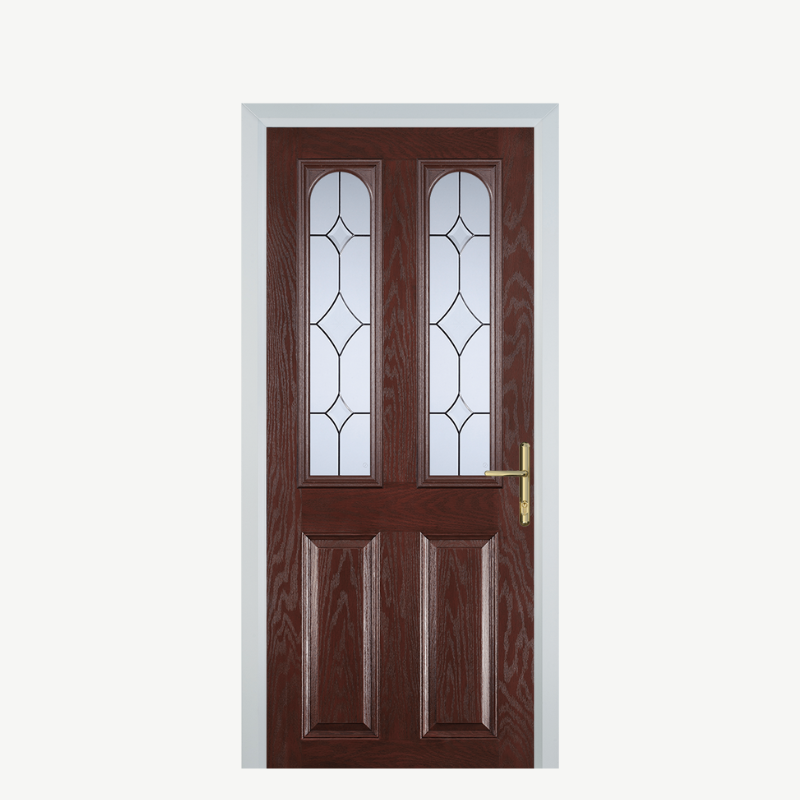 Add a sparkling richness with the Door A 2 Panel 2 Arch Dark Wood Crystal Diamond, fitted by UK Composite Doors. This dark wood finish with crystal diamond detailing brings warm sophistication, enhanced by composite perks: exceptional resilience to the elements, top-tier insulation for a warm interior, and advanced security for peace of mind. Easy to maintain and elegant, it’s a timeless, dependable choice. Available as a supply only option for self-installers.