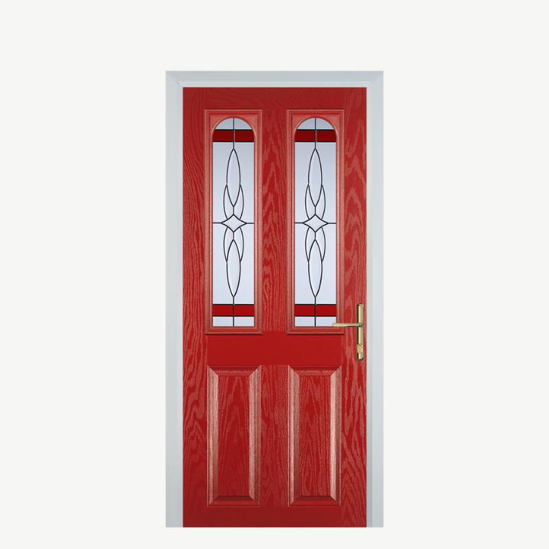 Door A 2 Panel 2 Arch Red Crystal Harmony Red