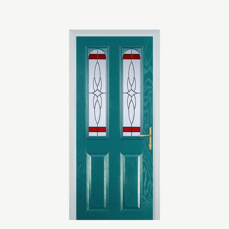 Door A 2 Panel 2 Arch Turquoise Blue Crystal Harmony Red