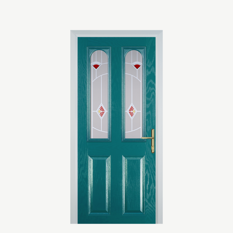 Door A 2 Panel 2 Arch Turquoise Blue Murano Red