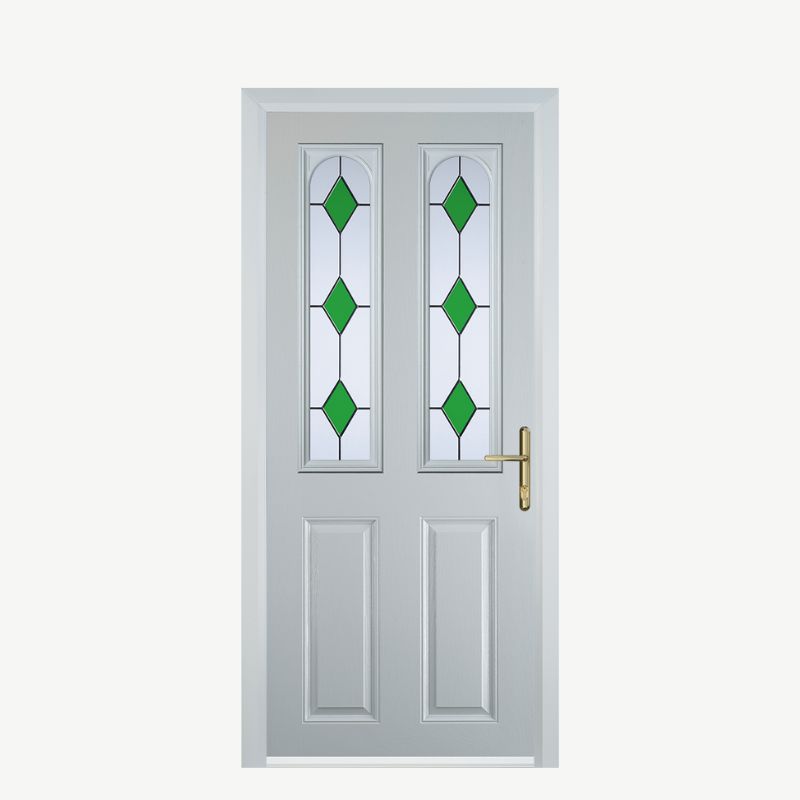 Refresh your entrance with the Door A 2 Panel 2 Arch White 3 Drop Diamond Green, fitted by UK Composite Doors. This white finish with green diamond accents brings a natural, classic vibe, paired with composite perks: exceptional durability to withstand time, top-tier insulation for a warm interior, and advanced security for peace of mind. Easy to maintain and stylish, it’s a dependable, eco-friendly choice. Opt for our supply only option if you’d like to install it yourself.