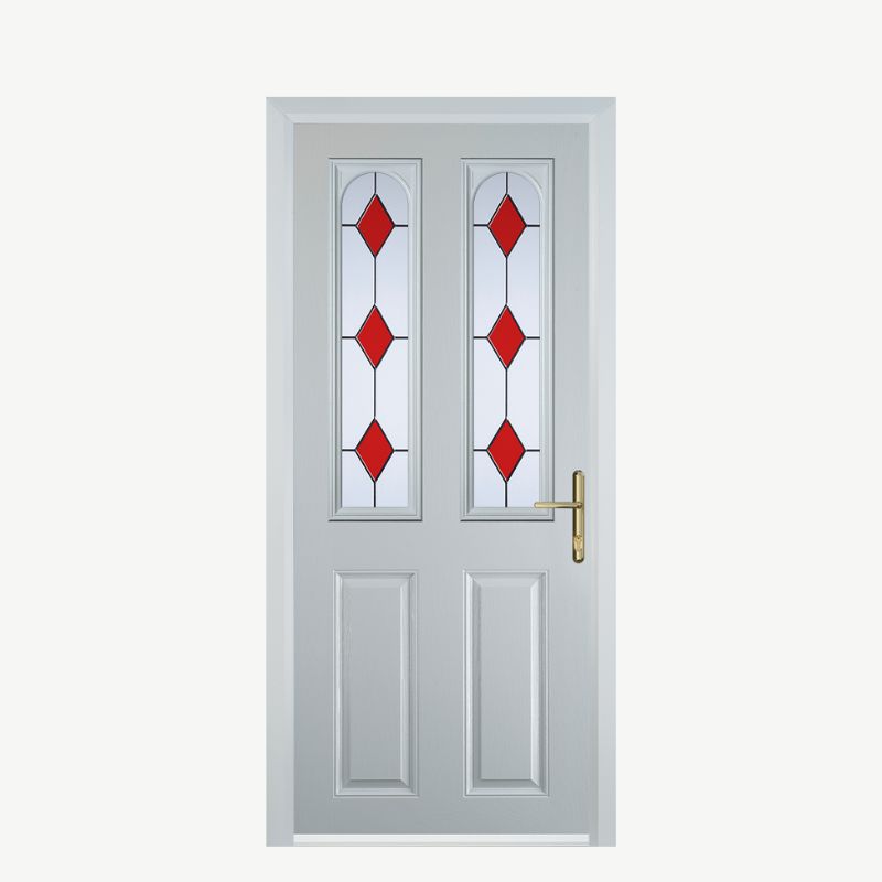 Door A 2 Panel 2 Arch White 3 Drop Diamond Red