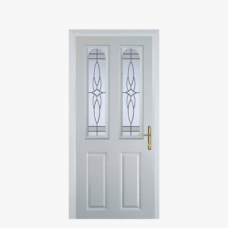 Infuse subtle elegance with the Door A 2 Panel 2 Arch White Crystal Harmony Frost, fitted by UK Composite Doors. This white finish with frosted crystal harmony detailing offers a cool, sophisticated look, paired with composite strengths: exceptional resilience to the elements, top-tier insulation for a warm interior, and advanced security for safety. Easy to maintain and chic, it’s a timeless, dependable choice. Choose our supply only option for DIY flexibility.