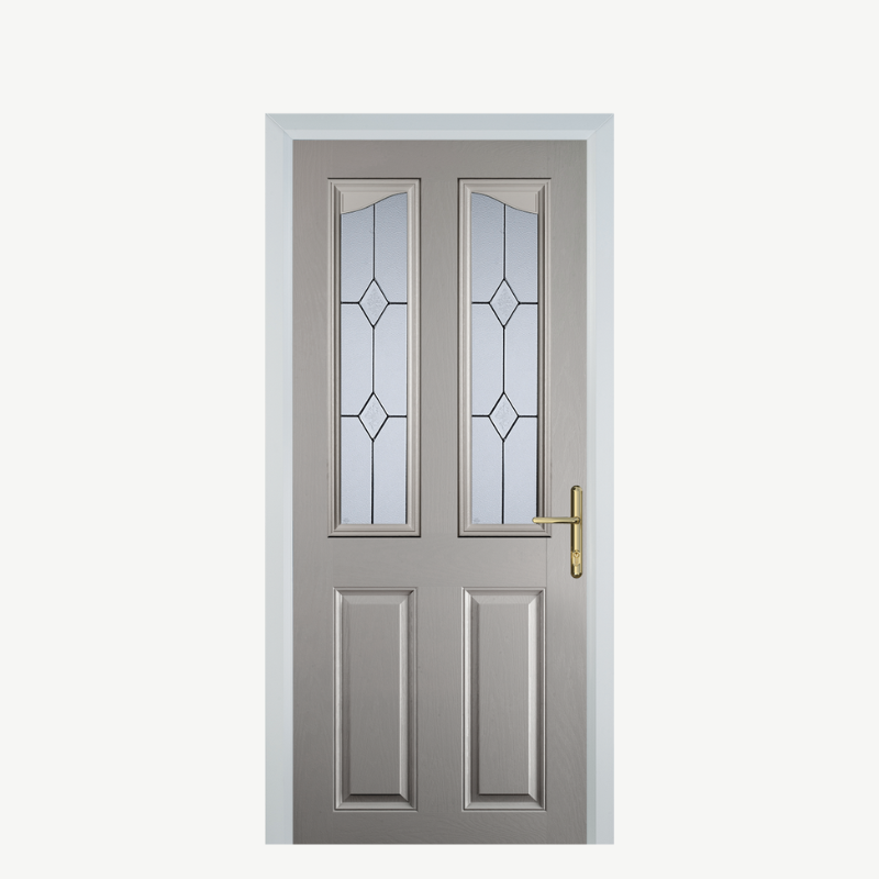 Introducing the Door B 2 Panel 2 Angle Agate Grey Classic, a remarkable addition to any home that combines elegance with durability. This composite front door is designed to enhance your entryway while providing superior security and insulation. Its agate grey finish offers a contemporary aesthetic that complements various architectural styles.