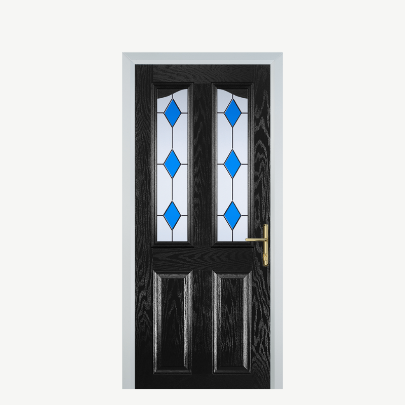 Introducing the Door B 2 Panel 2 Angle Black 3 Drop Diamond Blue, a perfect fusion of elegance and functionality designed to enhance the entrance of any home. This striking composite front door not only adds a contemporary flair but also ensures durability and security.