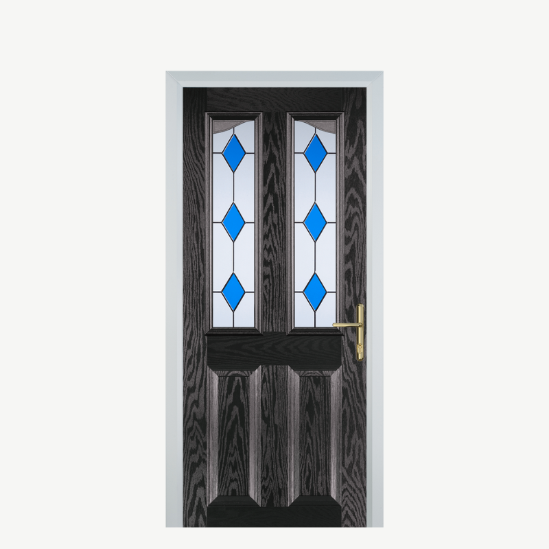 Introducing the Door B 2 Panel 2 Angle Black Brown 3 Drop Diamond Blue, a stunning addition to any home that combines elegance with durability. This composite front door not only enhances your property's curb appeal but also ensures security and energy efficiency.