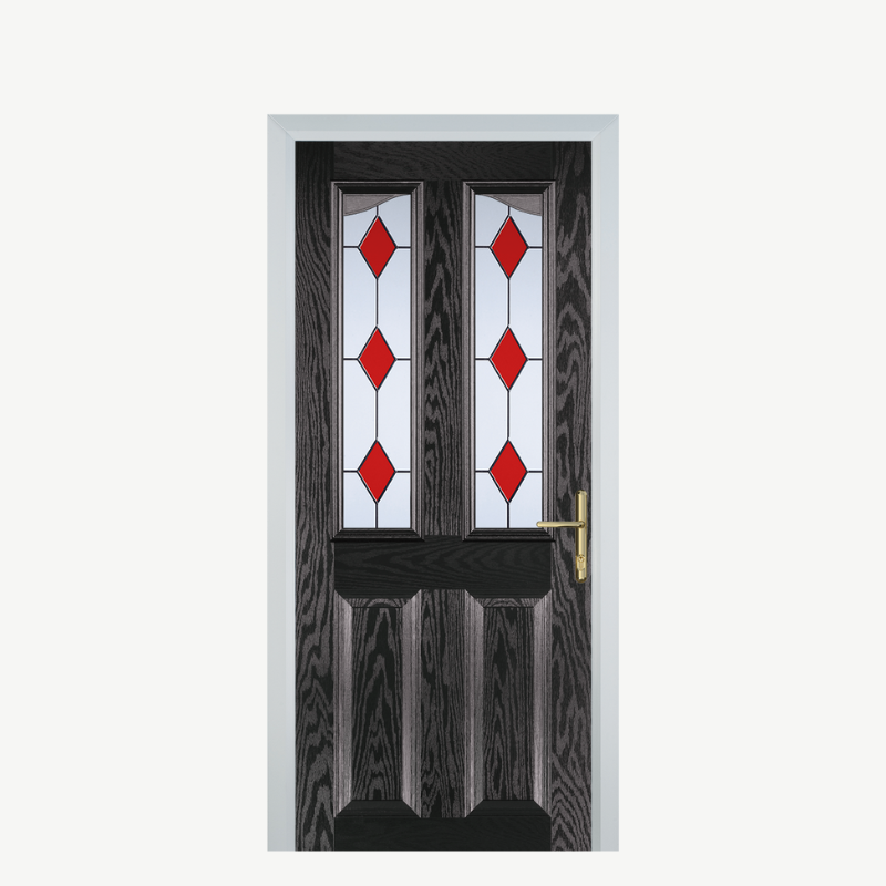Introducing the Door B 2 Panel 2 Angle Black Brown 3 Drop Diamond Red, a stunning addition to your home that combines elegance with security. This composite front door not only enhances your curb appeal but also provides durability and advanced weather resistance, making it an ideal choice for any homeowner looking to upgrade their entryway.