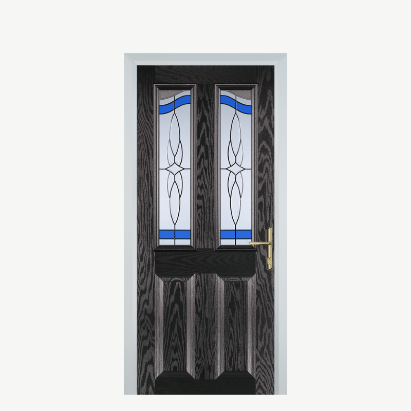 Introducing the Door B 2 Panel 2 Angle in Black Brown with Crystal Harmony Blue accents, a perfect blend of elegance and durability designed to enhance the entrance to your home. Crafted with care, this composite door not only adds a striking visual appeal but also offers superior performance that stands the test of time.