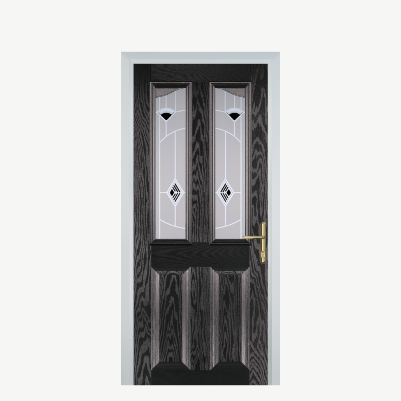 Introducing the Door B 2 Panel 2 Angle Black Brown Murano Black, a sophisticated addition to your home's entrance that combines style and functionality. This expertly crafted composite front door not only enhances your home's curb appeal but also ensures durability and security.