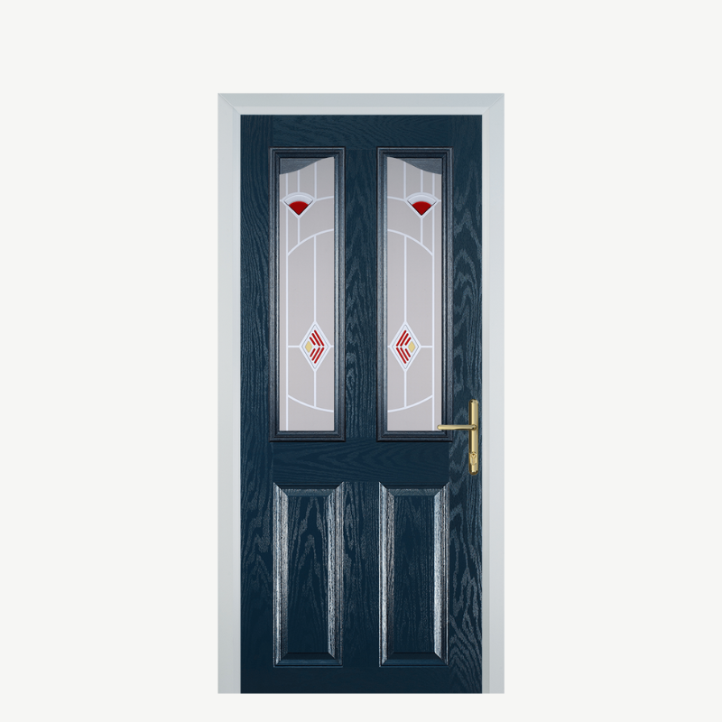 Introducing the Door B 2 Panel 2 Angle Blue Murano Red, an exquisite addition to your home that combines elegance and functionality. This stunning composite door is designed to elevate your entrance while providing durability and security. With its vibrant blue finish complemented by red accents, it offers a striking aesthetic that captures attention and enhances curb appeal.