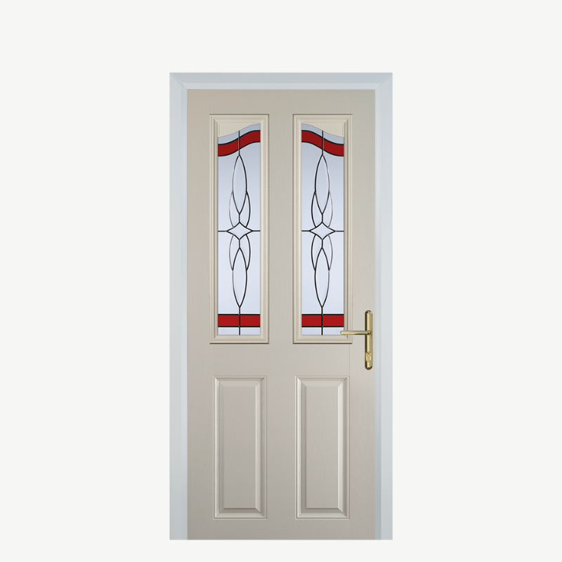 Introducing the Door B 2 Panel 2 Angle Cream Crystal Harmony Red, a stunning addition to any home that combines elegance and functionality. This beautifully crafted composite front door is designed to enhance your entryway while providing security and durability.