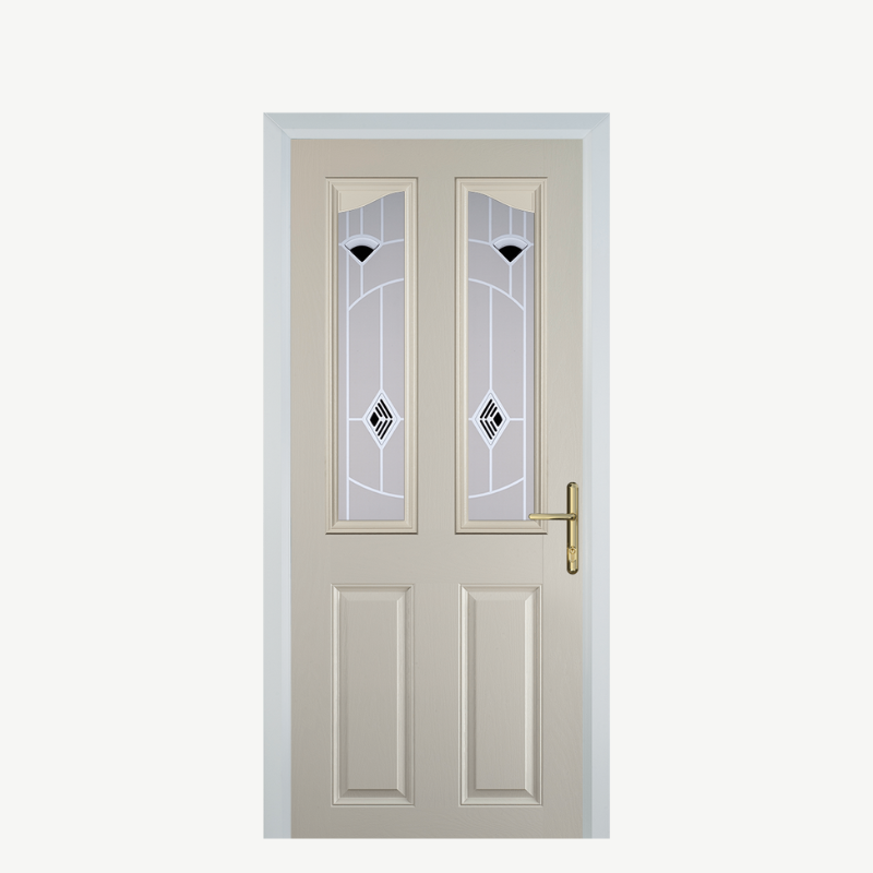 Introducing the Door B 2 Panel 2 Angle in Cream Murano Black, a perfect blend of elegance and durability designed to enhance the entrance of your home. This stunning composite front door not only elevates your property's aesthetic appeal but also provides exceptional security and insulation.