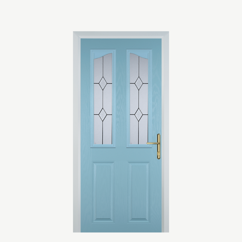 Introducing the Door B 2 Panel 2 Angle in Duck Egg Blue Classic, a stunning fusion of style and functionality that enhances the appeal of any entryway. This elegant composite front door offers a perfect blend of durability and aesthetic charm, making it an ideal choice for homeowners looking to elevate their property's exterior.