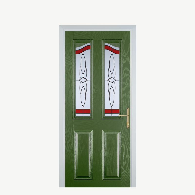 Crafted from top-notch composite materials, this door is low maintenance and easy to care for. Simply wipe clean with a damp cloth to maintain its stunning appearance. Elevate your home's entrance with the Door B 2 Panel 2 Angle Fern Green Crystal Harmony Red today.
