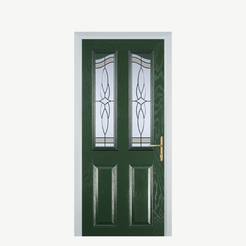 Introducing the Door B 2 Panel 2 Angle Green Crystal Harmony Frost, a stunning addition to any home that combines elegance with durability. This composite front door is designed to enhance your property's curb appeal while providing robust security and insulation. Its unique green hue and frosted crystal design create a modern aesthetic that is sure to impress.