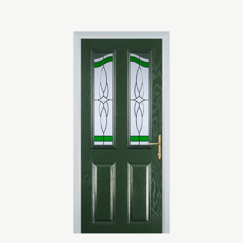 Introducing the Door B 2 Panel 2 Angle Green Crystal Harmony Green, a perfect blend of elegance and functionality for your home. This striking composite front door not only enhances your home's curb appeal but also provides superior performance and security.