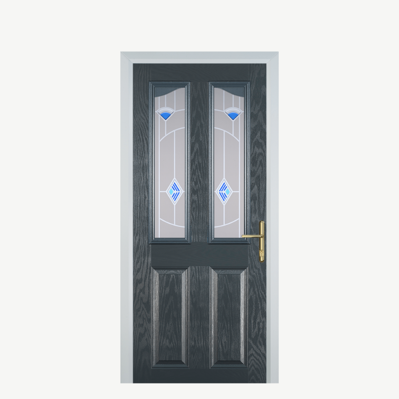 Crafted from premium composite materials, the Door B 2 Panel 2 Angle Grey Murano Blue is designed to withstand the test of time. For care, simply wipe clean with a damp cloth to maintain its stunning appearance. Upgrade your home with this stylish and robust front door today.
