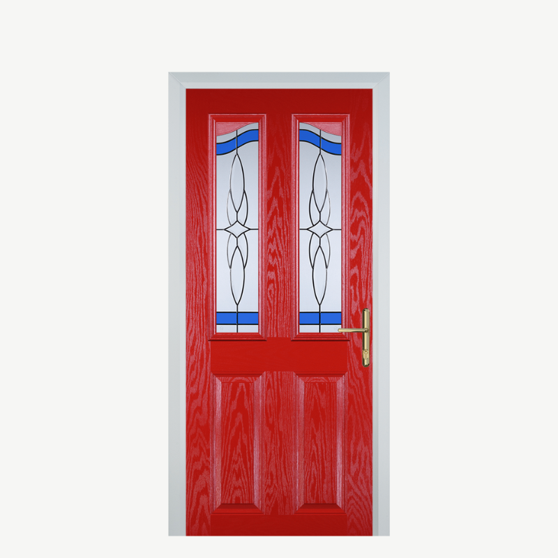 Introducing the Door B 2 Panel 2 Angle in a striking Poppy Red high gloss finish, designed to enhance the entrance of your home with elegance and sophistication. This composite front door not only provides security but also offers a contemporary aesthetic that complements any architectural style.