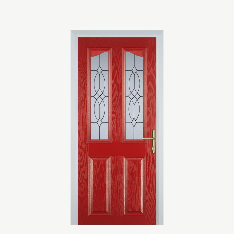 Introducing the Door B 2 Panel 2 Angle Red Flair, a stunning addition to your home's exterior that combines elegance and security. This composite front door not only enhances the aesthetic appeal of your property but also offers superior durability and insulation.