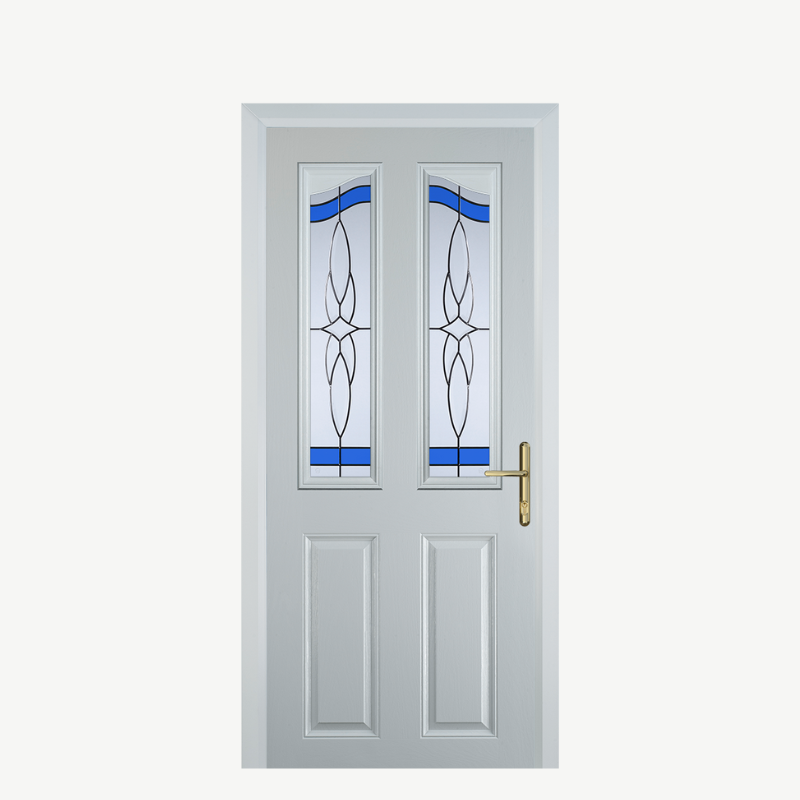 Introducing the Door B 2 Panel 2 Angle White Crystal Harmony Blue, a striking addition to any home that seamlessly combines elegance and durability. This beautifully designed front door not only enhances your home's curb appeal but also provides a secure and energy-efficient entryway.