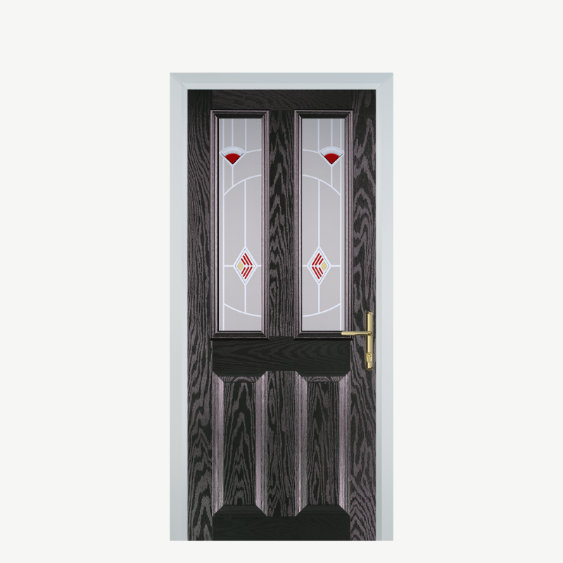 Introducing the Door C 2 Panel 2 Square Black Brown Murano Red, a stunning composite front door that seamlessly blends modern design with traditional elegance. This door is not just an entrance; it’s a statement piece that enhances the aesthetic appeal of your home while providing security and durability.