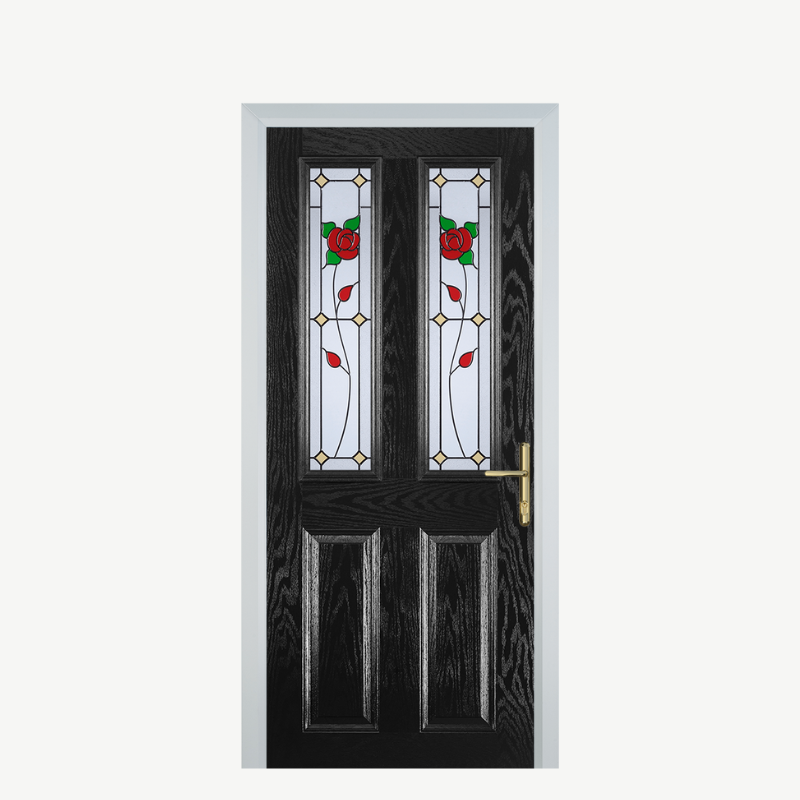 Introducing the Door C 2 Panel 2 Square Black English Rose, a stunning addition to any home that seamlessly combines style, security, and durability. This composite front door is designed to enhance your property’s curb appeal while providing the utmost protection against the elements.