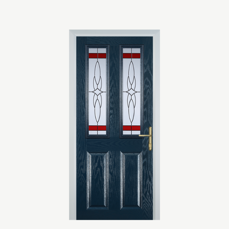 Introducing the Door C 2 Panel 2 Square Blue Crystal Harmony Red, a stunning addition to any home that combines elegance with functionality. This composite front door is designed to enhance your entryway while ensuring durability and security. The striking blue hue, complemented by crystal accents, creates an inviting and modern aesthetic.