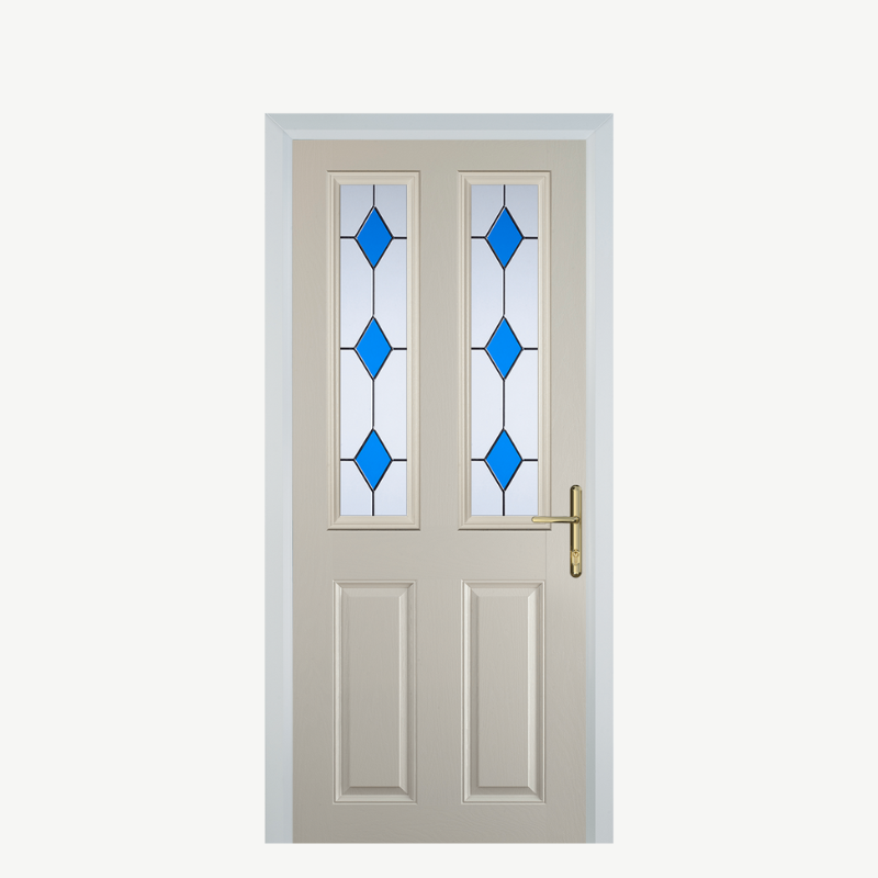 Introducing the Door C 2 Panel 2 Square Cream 3 Drop Diamond Blue, a stunning addition to your home that combines style, durability, and security. This elegant composite front door is designed to enhance your home's curb appeal while providing a warm welcome to all who enter.