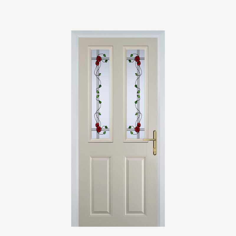Introducing the exquisite Door C 2 Panel 2 Square in Cream Mackintosh Rose, a perfect blend of style and functionality for your home. Designed to enhance your entrance, this composite front door offers a stunning aesthetic while providing exceptional durability and security.