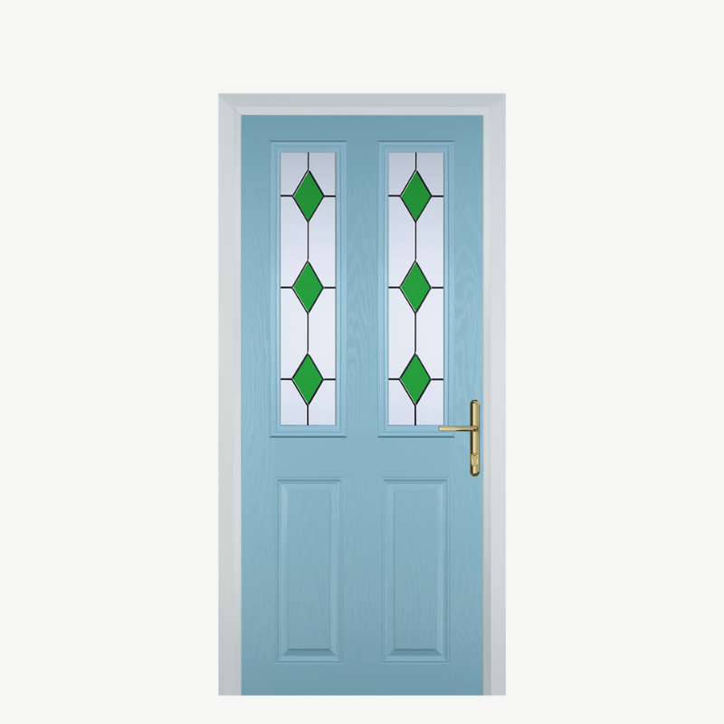 Introducing the Door C 2 Panel 2 Square in Duck Egg Blue, a stunning composite front door that combines elegance with durability. This beautifully crafted door not only enhances your home's curb appeal but also provides security and insulation. Perfect for any modern or traditional home, it makes a lasting impression at first glance.