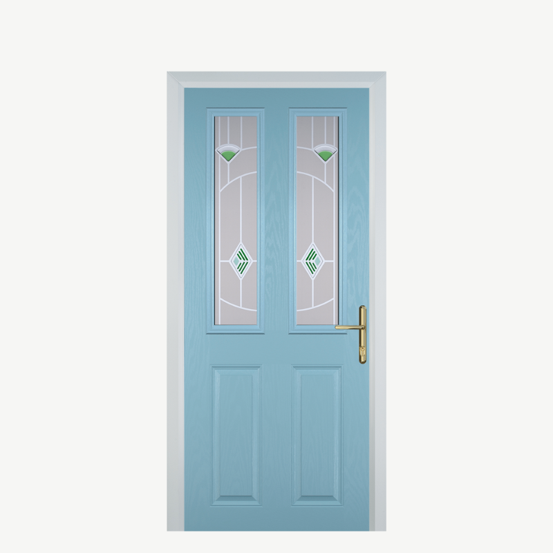 Introducing the Door C 2 Panel 2 Square in a stunning Duck Egg Blue and Murano Green finish, an exquisite addition to your home that combines elegance with functionality. This composite front door not only enhances your property's curb appeal but also provides robust security and insulation.