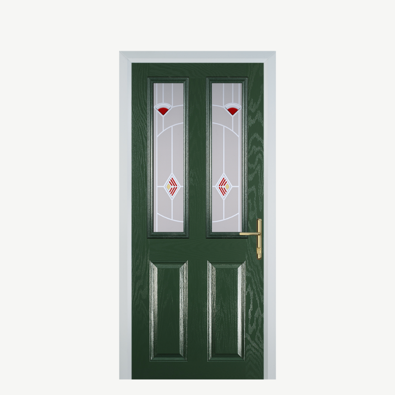 Introducing the Door C 2 Panel 2 Square Green Murano Red, a striking addition to your home that combines modern design with exceptional functionality. This composite front door not only enhances your curb appeal but also provides superior insulation and security, making it a smart investment for any homeowner looking to elevate their entrance.