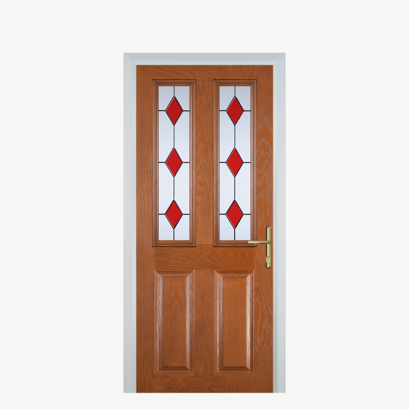 Introducing the Door C 2 Panel 2 Square Oak 3 Drop Diamond Red, a striking addition to your home that combines elegance and functionality. This composite front door not only enhances your property's curb appeal but also provides security and durability. Crafted with precision, this door is designed to be a beautiful and practical entryway.
