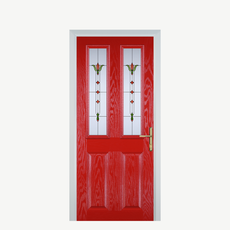 Introducing the Door C 2 Panel 2 Square Poppy Red (High Gloss) Fleur, an exquisite composite front door designed to elevate the aesthetic appeal of any home. With its vibrant poppy red finish and striking high gloss surface, this door is not just a functional entryway but also a statement piece that enhances your home's curb appeal.
