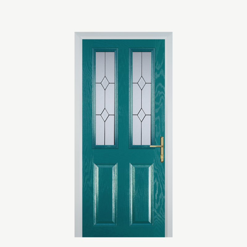 Introducing the Door C 2 Panel 2 Square Turquoise Blue Classic, a stunning addition to any home that combines elegance and durability. This composite front door not only enhances your home's curb appeal but also provides a secure entryway for you and your family.
