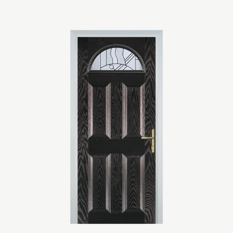 Introducing the Door D 4 Panel 1 Arch Black Brown Zinc Art Abstract, a perfect blend of modern design and durability that elevates the aesthetic of any entryway. Crafted to make a bold statement, this composite door offers both style and functionality, ensuring your home exudes elegance while providing security.