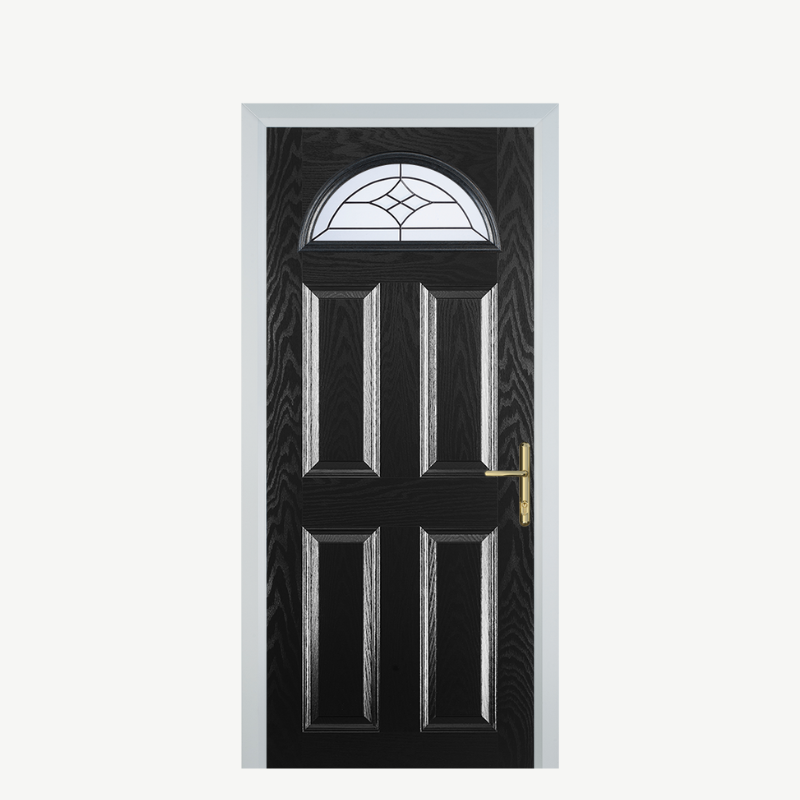 Introducing the Door D 4 Panel 1 Arch Black Crystal Harmony Frost, a stunning addition to your home that blends elegance with functionality. This composite front door is designed to make a striking first impression while providing enhanced security and insulation.