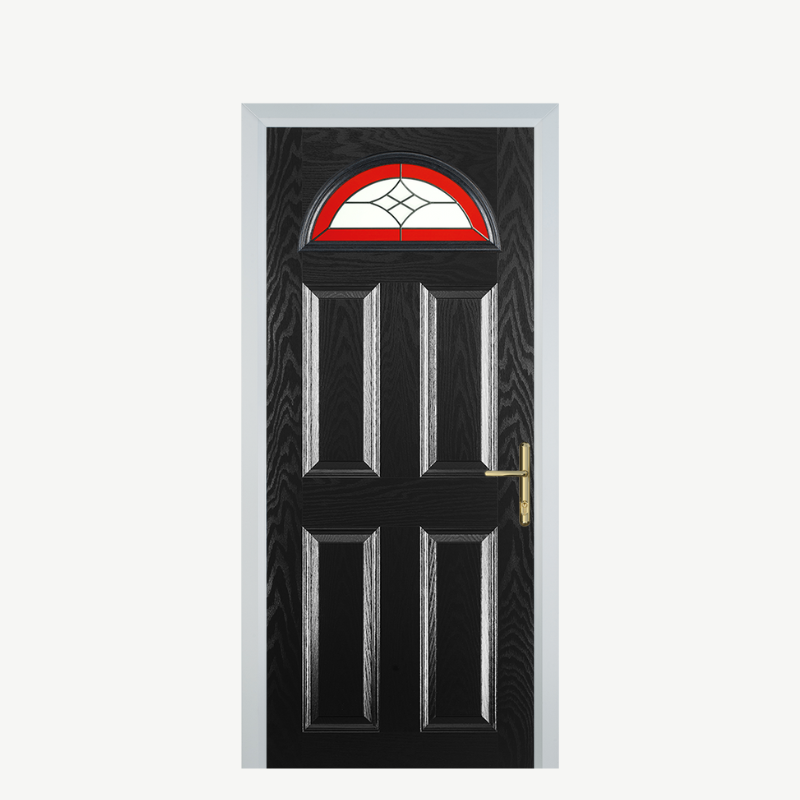 Door D 4 Panel 1 Arch Black Crystal Harmony Red