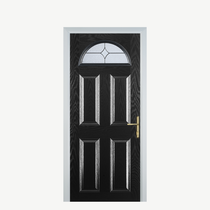Introducing the Door D 4 Panel 1 Arch Black Flair, an exquisite blend of elegance and functionality designed to enhance your home's entrance. Crafted with precision, this composite front door not only offers superior durability but also elevates your property's curb appeal with its striking black finish.