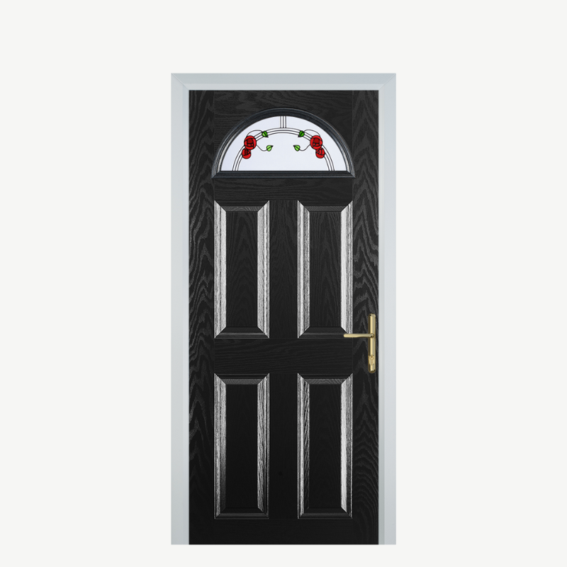 Introducing the Door D 4 Panel 1 Arch in Black Mackintosh Rose, the perfect blend of elegance and functionality for your home. Crafted to enhance your entryway, this composite front door offers a sophisticated look while ensuring durability and security.