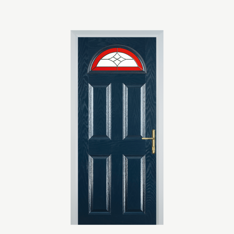 Introducing the "Door D 4 Panel 1 Arch Blue Crystal Harmony Red," a perfect blend of elegance and durability designed to elevate your home's entrance. This stunning composite door not only enhances curb appeal but also provides security and insulation, making it an excellent choice for homeowners seeking both style and functionality.