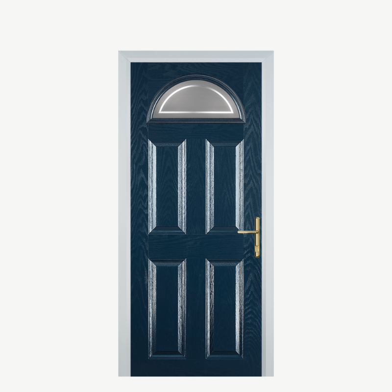 Introducing the Door D 4 Panel 1 Arch Blue Enfield, a beautifully crafted composite front door designed to elevate the aesthetic appeal of your home while providing exceptional security and durability. With its striking blue finish and elegant arch design, this door is not only a functional entryway but also a stunning focal point that enhances your property’s curb appeal.
