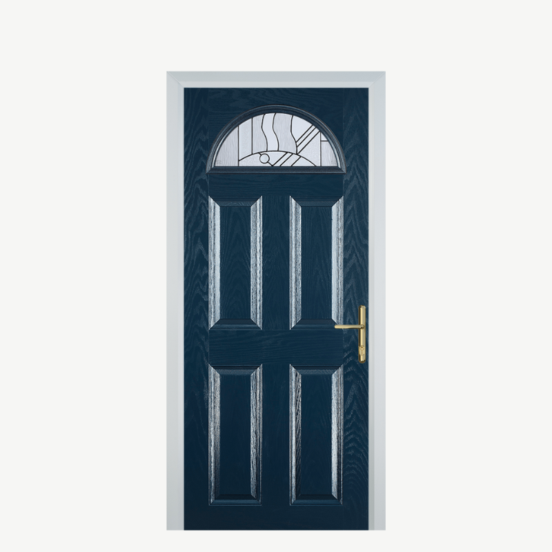 Introducing the Door D 4 Panel 1 Arch Blue Zinc Art Abstract, a stunning composite front door that combines modern aesthetics with exceptional durability. Designed to elevate your home's entrance, this door is perfect for those seeking a unique architectural statement without compromising on performance.