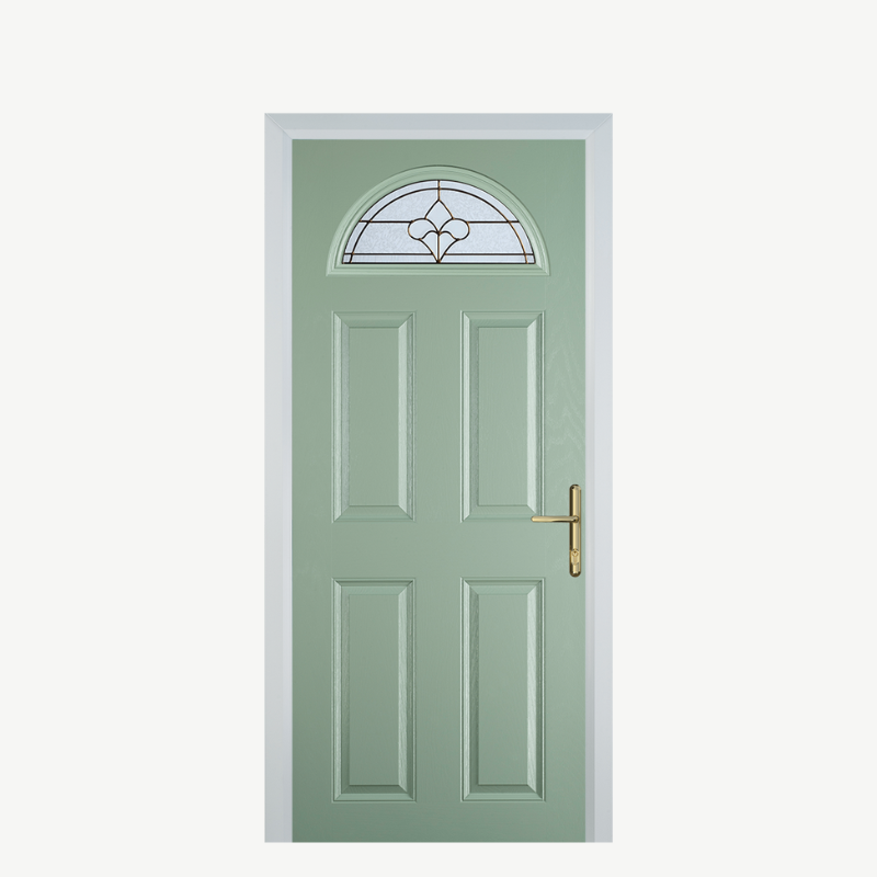 Introducing the Door D 4 Panel 1 Arch in Chartwell Green, a stunning addition to your home that effortlessly combines style and functionality. This composite front door not only enhances your property's curb appeal but also offers superior security and insulation.
